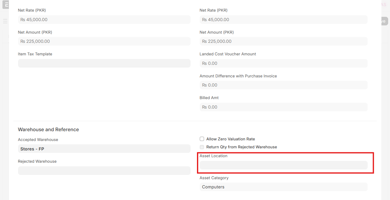 Important Note: If you’ve bought multiple units of an asset (5 laptops in one Purchase Receipt), ERPNext won’t create multiple Asset records automatically when using the manual approach. You need to manually create an individual Asset record for each unit, even though they were bought in one single transaction.