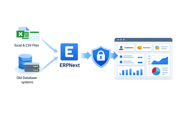 ERPNext Data Migration is the process of transferring your business data from legacy systems, spreadsheets, or other ERPs into ERPNext while preserving accuracy, structure, and relationships.