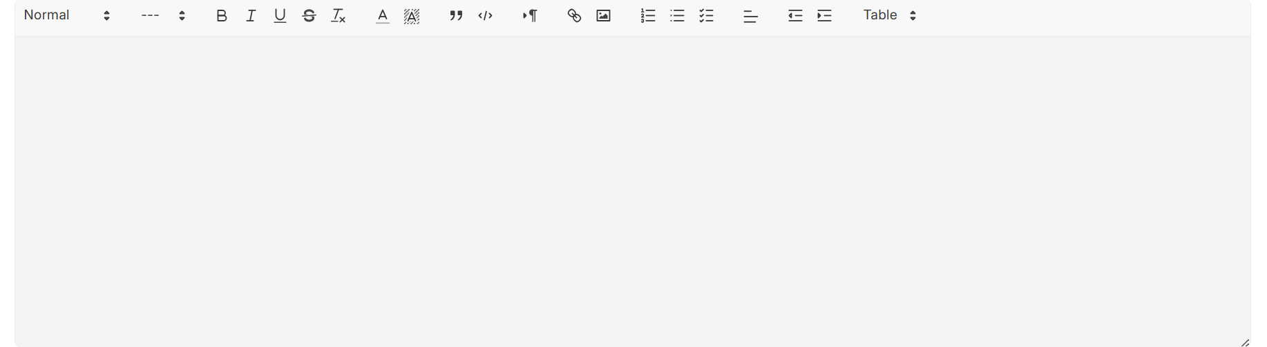 - Rich Text Editor (default): Good for simple formatting, like links, bullet points, and bold text.