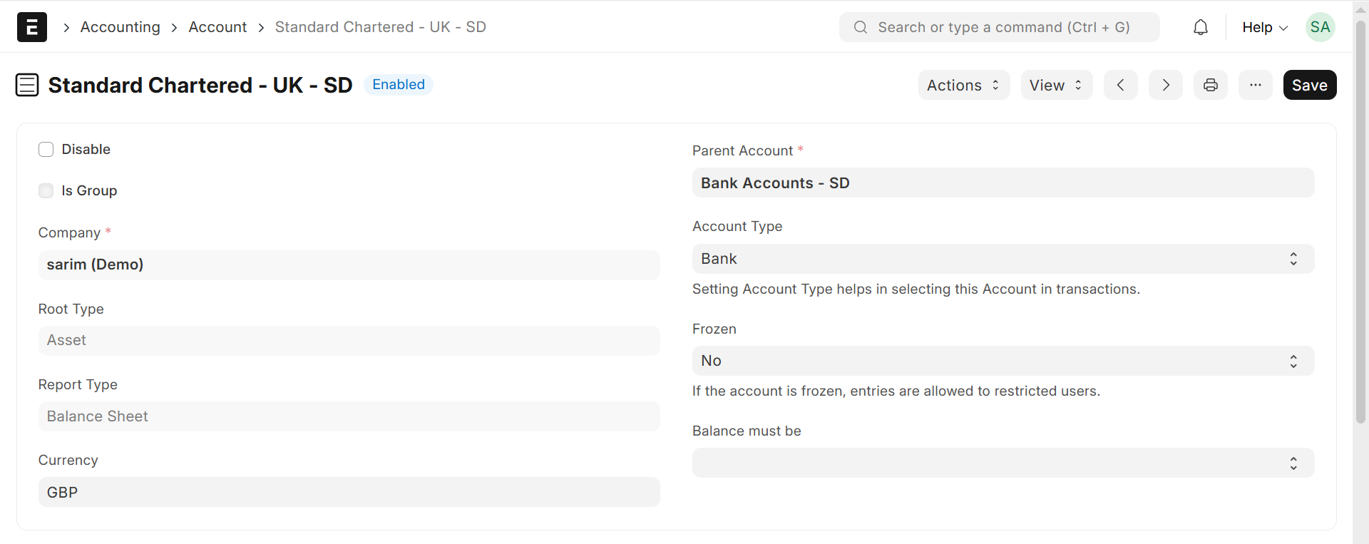 For instance, you would go to the Chart of Accounts, create a new account under Bank Accounts, and set its currency to USD if you wanted to open a USD bank account for international payments. ERPNext will then display the account’s balance in USD, even if your company’s primary currency is PKR, INR, or another one. From that point on, only USD transactions can be made against that account.