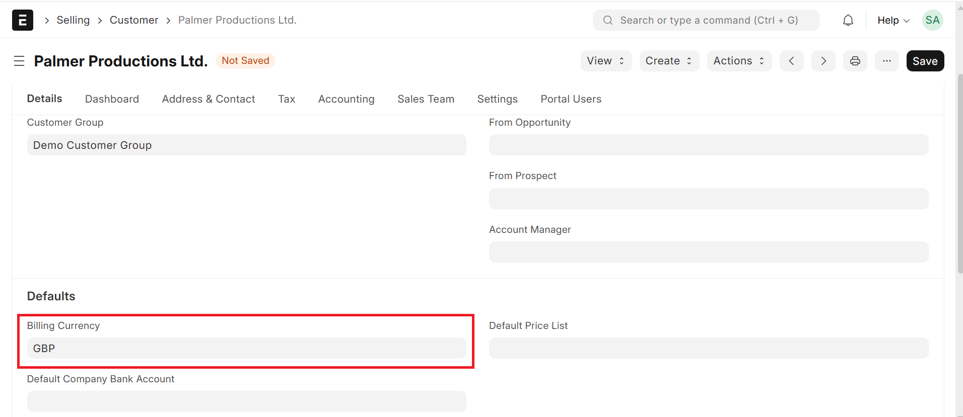 ERPNext offers you greater flexibility if the party’s account currency and the company currency are the same. You can conduct business in any currency, but the actual accounting entries (GL Entries) will still be recorded in the party’s designated currency. Accurate tracking and reporting are thus guaranteed.