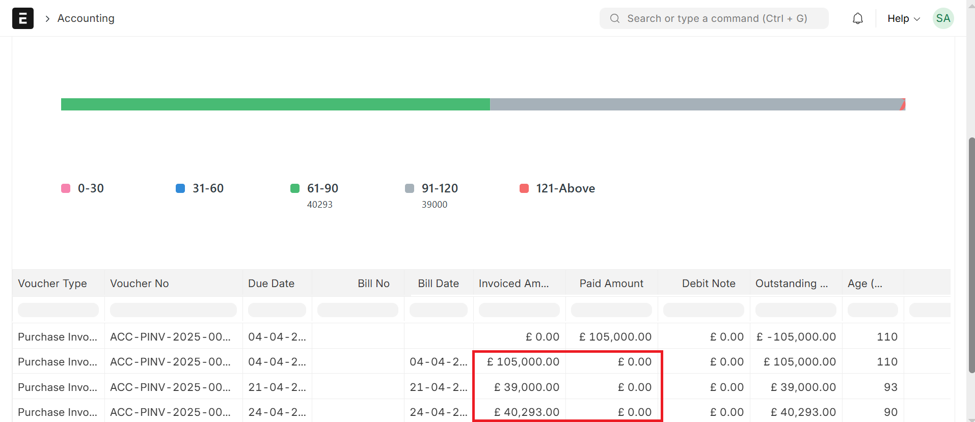 Although it pertains to suppliers, the reasoning behind a purchase invoice is comparable to that of a sales invoice. ERPNext uses the accounting currency of the supplier to make accounting entries. The system makes sure that all computations, including the Outstanding Amount, Advance Amount, and Write Off Amount, are performed in the Supplier’s currency if that currency differs from your company’s.