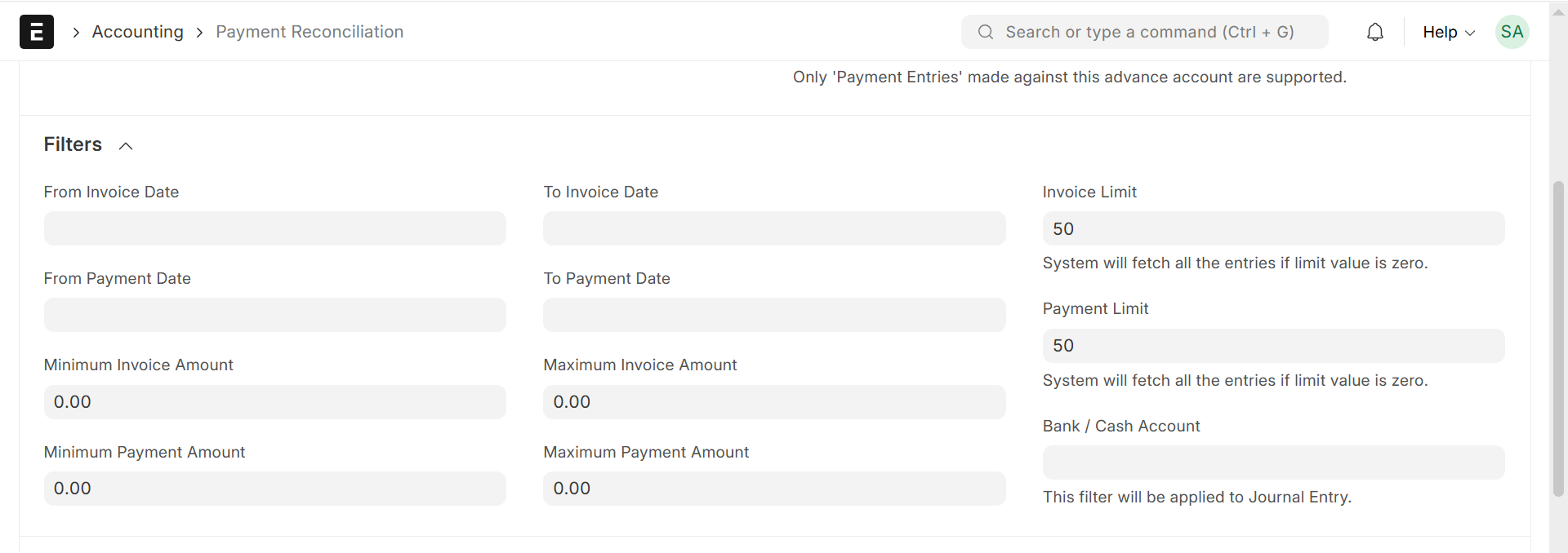 - Payments that are not associated with any invoice are stored in the system as advances.