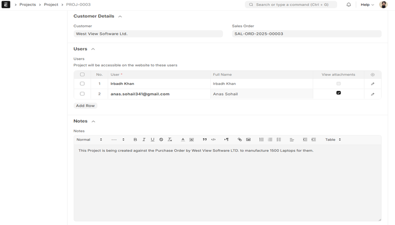 Customer Association: While doing a project for a certain customer, the Customer field ensures easy association of the project itself with the record of the customer. In this manner, all updates, activities, and reports carried out on the project automatically link to the proper customer, maintaining communication and financial tracking streamlined within the project process.