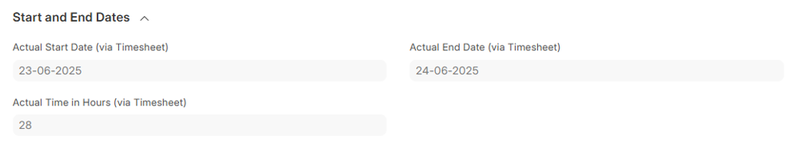 Actual End Date (Auto-Tracked): Likewise, Actual End Date is automatically filled with the latest Timesheet. This gives the overall time of working of the project accurately without the manual efforts required to track the project.