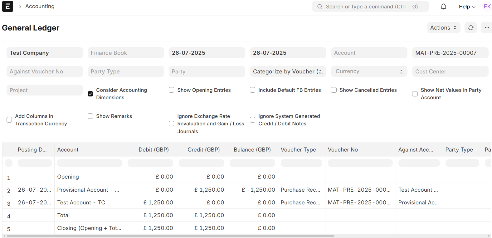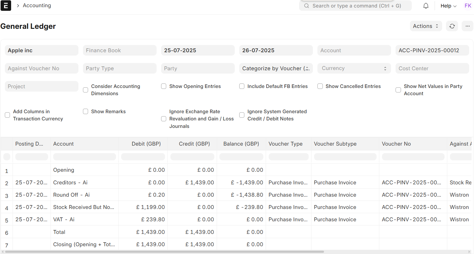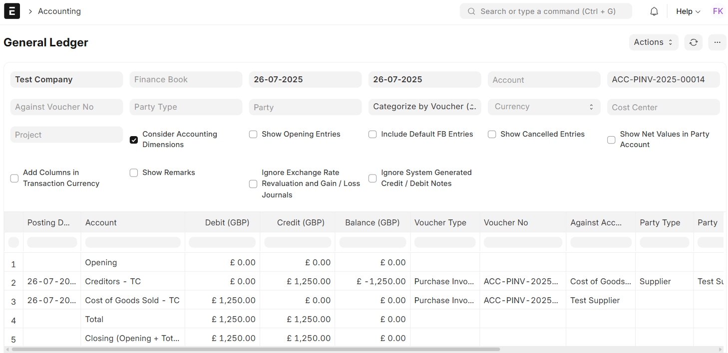 - Reversal of Provisional Entries: When the Purchase Invoice is posted, the system automatically reverses the provisional entries that were entered at the Purchase Receipt level. This is to ensure that your books are not double-stated or replicated and that all expense figures are in line with the actual invoice.