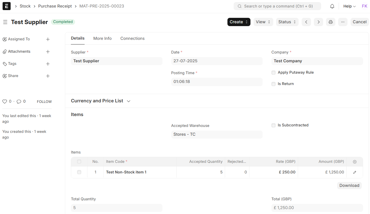 - Landed Cost Voucher: If there are extra expenses like freight, customs, or insurance, you can distribute them proportionally among received goods using a Landed Cost Voucher.
