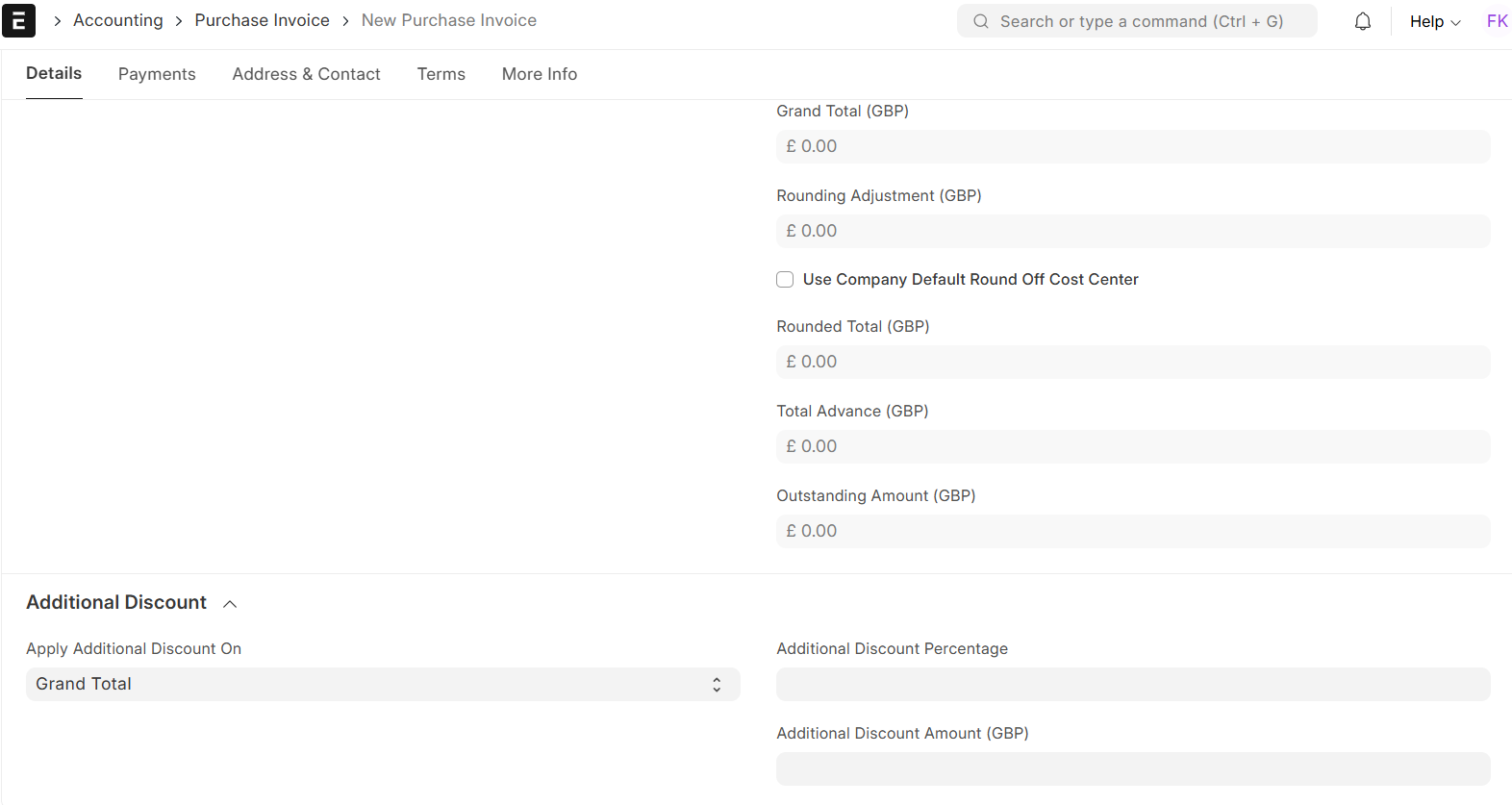 ERPNext enables you to capture details that are available on your actual invoice document from your supplier. Such fields assist in documentation as well as future reconciliation.