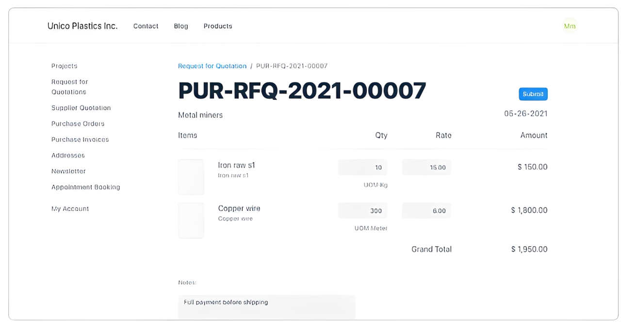 This whole process provides a streamlined and automated RFQ, thus eliminating manual data entry-related delays and errors.