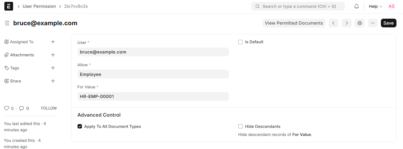 - This is simplified in ERPNext as records of User Permission are automatically created when a Leave Approver is related to any employee documents, thus saving time to a greater extent.