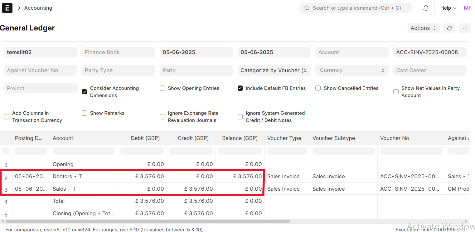 • Credit: Income Account (Net Amount per Item excluding taxes)
