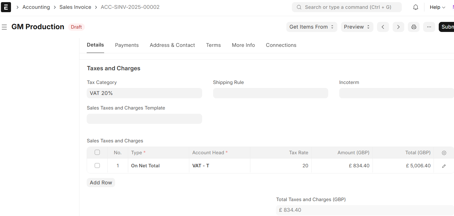 While ERPNext has built-in functionality for Pakistan GST, UK businesses can replicate similar information for VAT compliance: