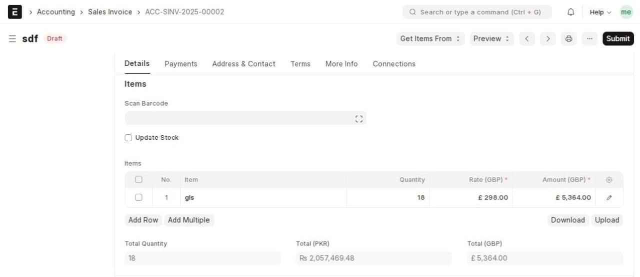 - Alternatively, you may also make a return entry against the initial sales invoice to return stock and credit note; select the “Update Stock” option in Return Sales Invoice.