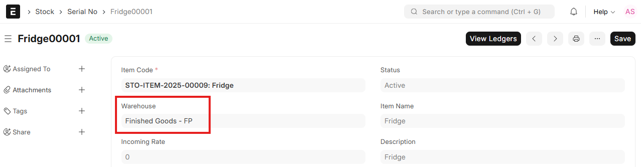 - Note: If a transaction has previously been effected using that Item, the “Has Serial No” field in the Item cannot be switched.