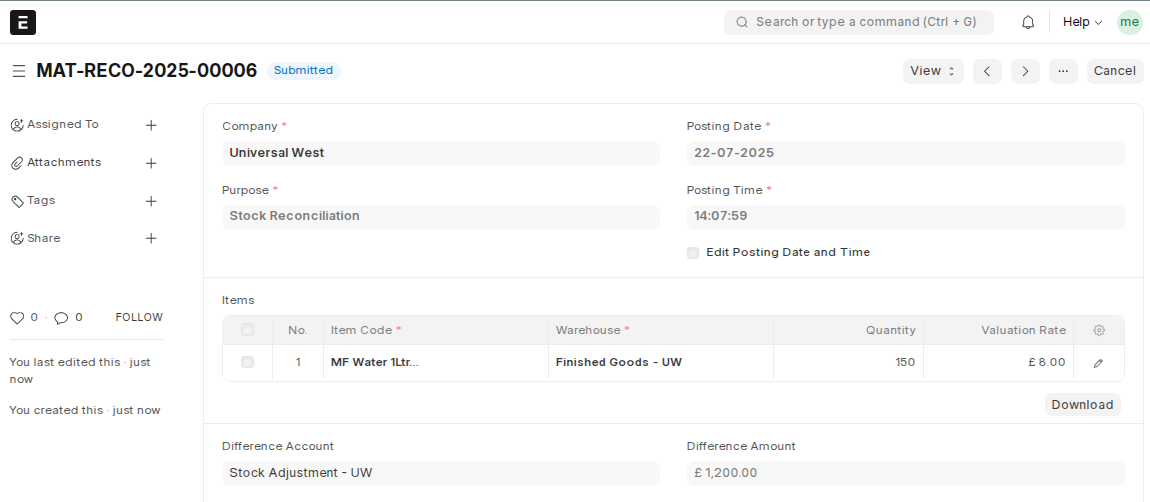 Once a Stock Reconciliation is submitted: