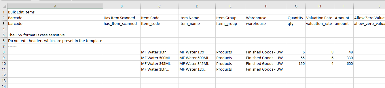 - Don’t change the column headers because they are case-sensitive.