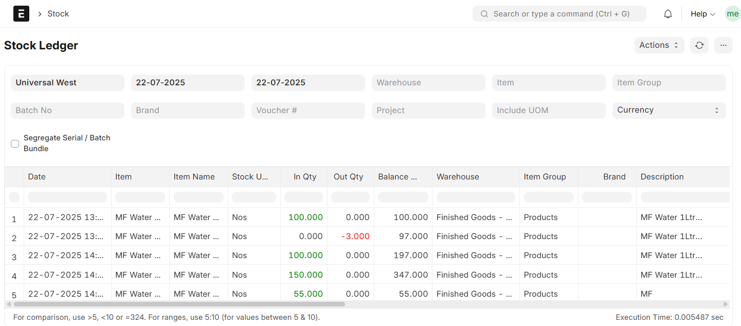 - Check Stock Ledger Report for updated stock balance.