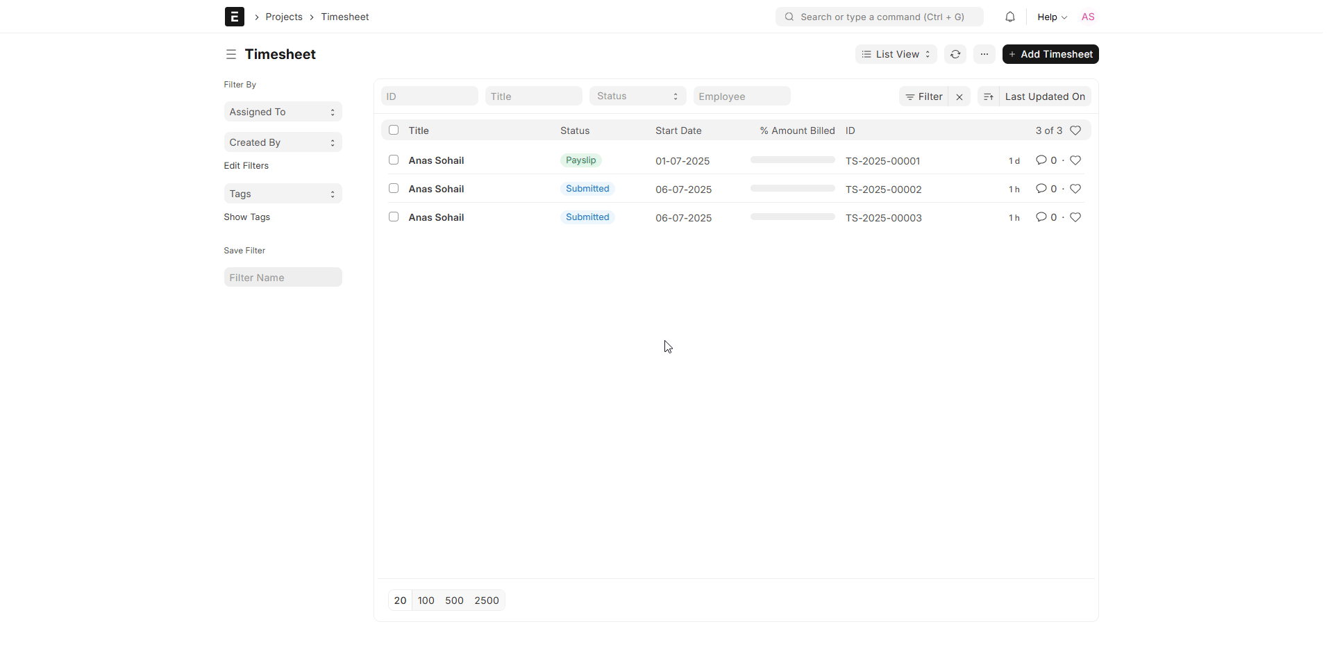 3. After Saving the Timesheet