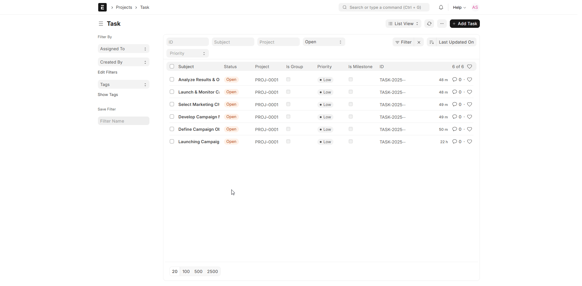 - Project: The project context in which the task lies.